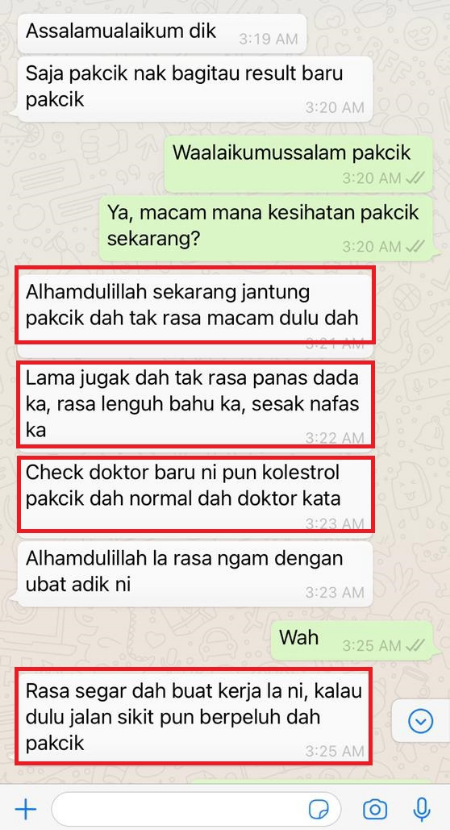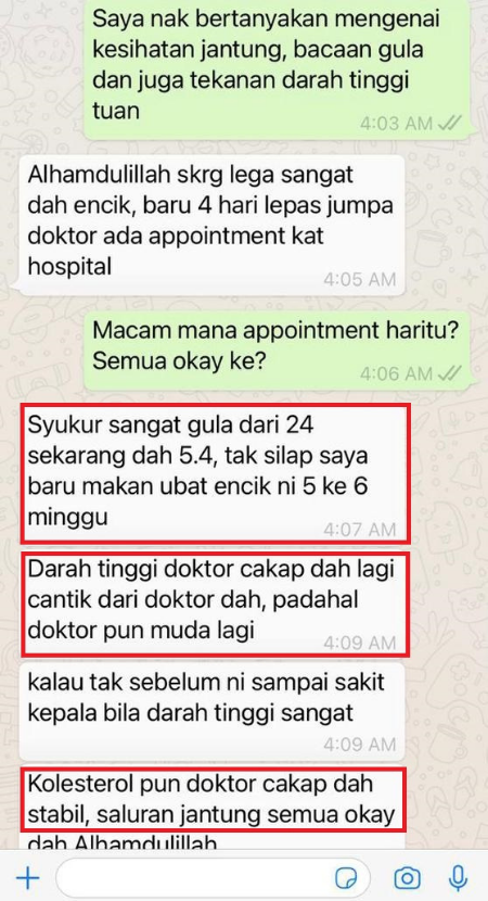 Disclaimer: Testimoni di atas adalah dari pengguna produk kami yang sebenar. Namun hasil mungkin berbeza mengikut keadaan dan kesihatan pengguna.